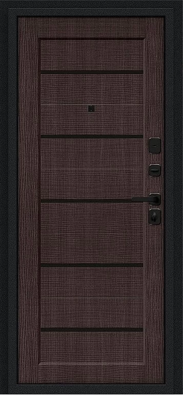 Надежная входная Дверь Браво Борн/SBlack Букле черное/Wenge Melinga премиум класса по цене 33 440 руб. Большая толщина стали защитит от проникновения в ваш дом, квартиру или коттедж. Используется очень качественная фурнитура: замки, цилиндры, ручки, защелки. Покрытие и отделка двери изготовлено под внимательным контролем производителя. Дверь имеет долгий срок службы и гарантию.
